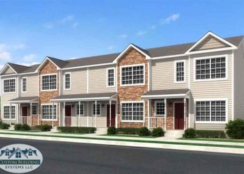 A two story multi-family modular townhouse with 2 and 3 bedrooms units with 1 1/2 bathrooms, large living room, dining room and kitchen.